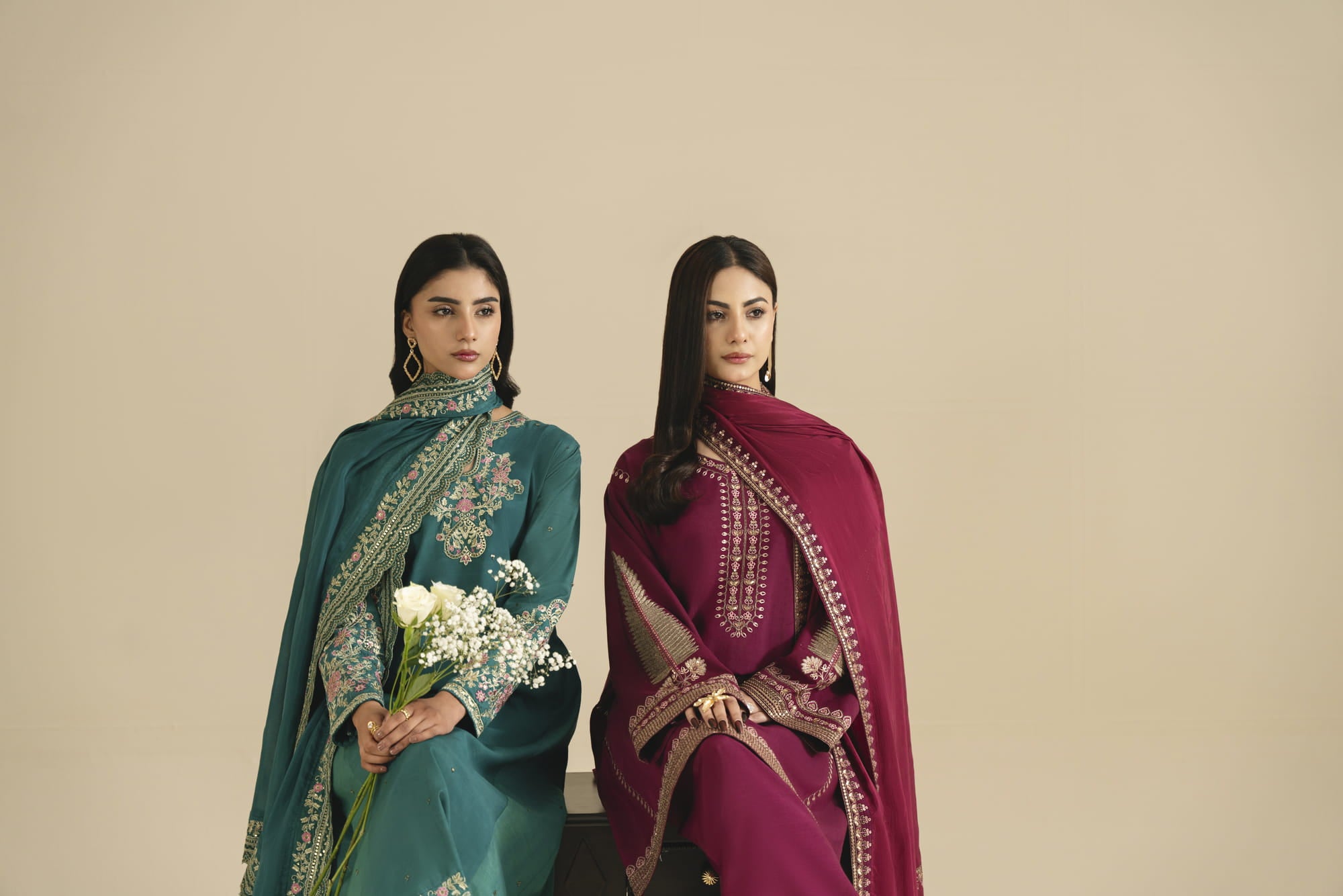 Intricate embroidery, fluid tailoring, and timeless tones come together in a collection that balances tradition with contemporary elegance.